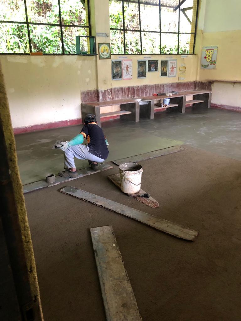 • Der mittlerweile über 40 Jahre alte Fußboden hat überall Löcher und stellte eine Gefahr für Kinder und Erwachsene dar